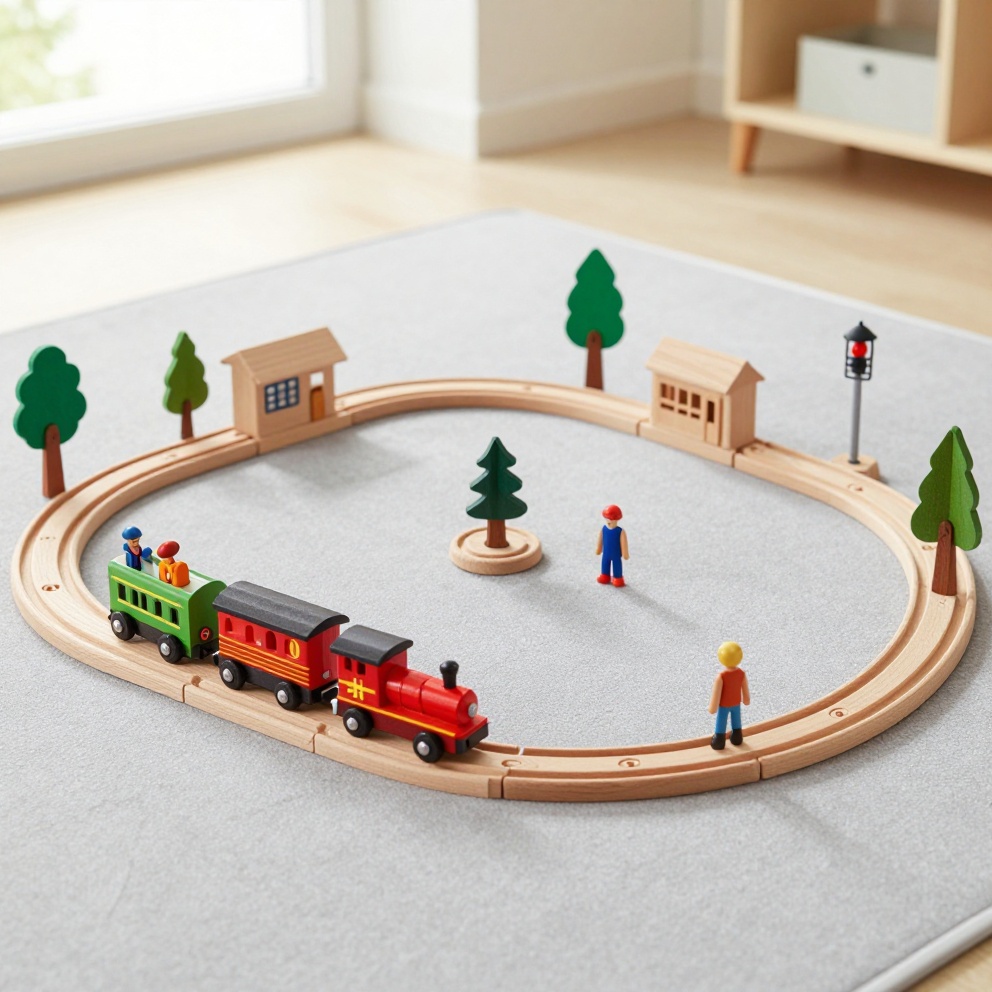 The ToyBoom Wooden Train Set brings the timeless joy of model railways to young children. This 50-piece set includes wooden tracks, trains, trees, buildings, and figures – everything needed to create a bustling railway world. The tracks are compatible with all major wooden train systems (Brio, Thomas, IKEA), allowing unlimited expansion. Made from sustainably sourced beechwood and painted with non-toxic, child-safe colors, this set provides years of open-ended, imaginative play.